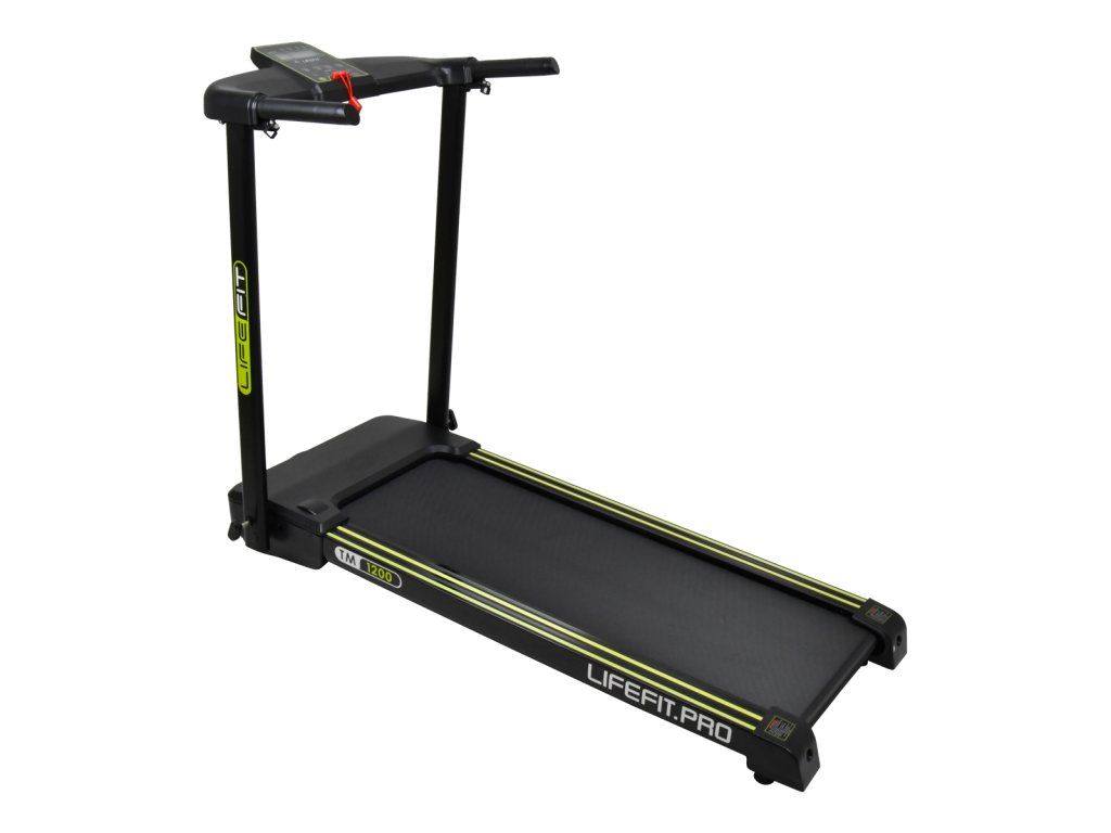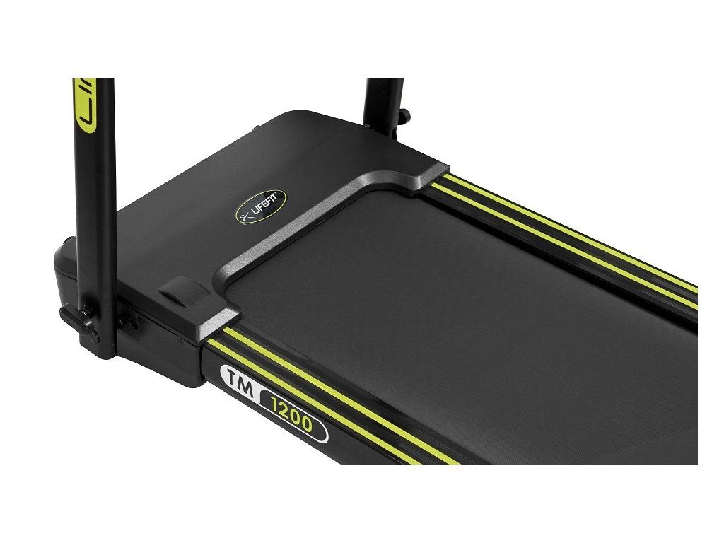 Motorový běžecký pás LIFEFIT TM1200 - motor o výkonu max. 1,7 HP (continuity 0,85 HP) - rychlost 1-12 km/h - bez možnosti manuálního náklonu - pás s běžeckou plochou 110x37,5 cm - LCD displej zobrazující čas, vzdálenost, rychlost, kalorie - 3 přednastavené programy - sklopná konstrukce a pojezdová kolečka umožňují snadnou manipulaci - bezpečnostní brzda - max. nosnost 100 kg - rozměry: 144x64x107,5 cm - rozměry ve sklopeném stavu: 28x64x140 cmDoplňkové parametry