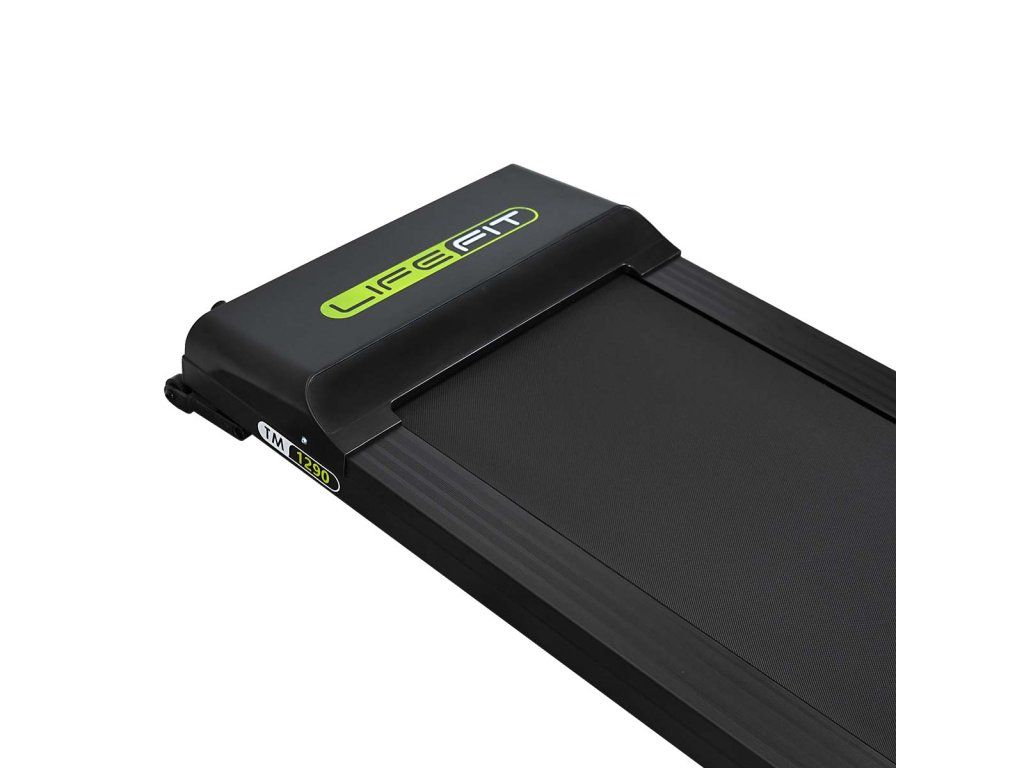 Motorový chodecký/běžecký pás LIFEFIT TM1290 - motor o výkonu max. 1,2 HP (continuity 0,6 HP) - rychlost 1-6 km/h - pás bez vertikální podpůrné konstrukce (držadel) - bez možnosti manuálního náklonu - pás s běžeckou plochou 115x41 cm - LCD displej zobrazující čas, vzdálenost, rychlost - ovládání pásu pomocí dálkového ovladače, nebo přes aplikaci - možnost Bluetooth propojení (aplikace SPAX) - pojezdová kolečka umožňují snadnou manipulaci - max. nosnost 90 kg - rozměry: 147x60x15 cm - hmotnost pásu: 26,2 kgDoplňkové parametry