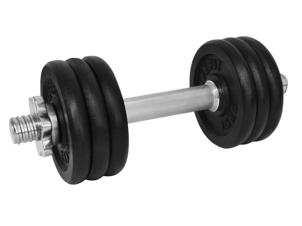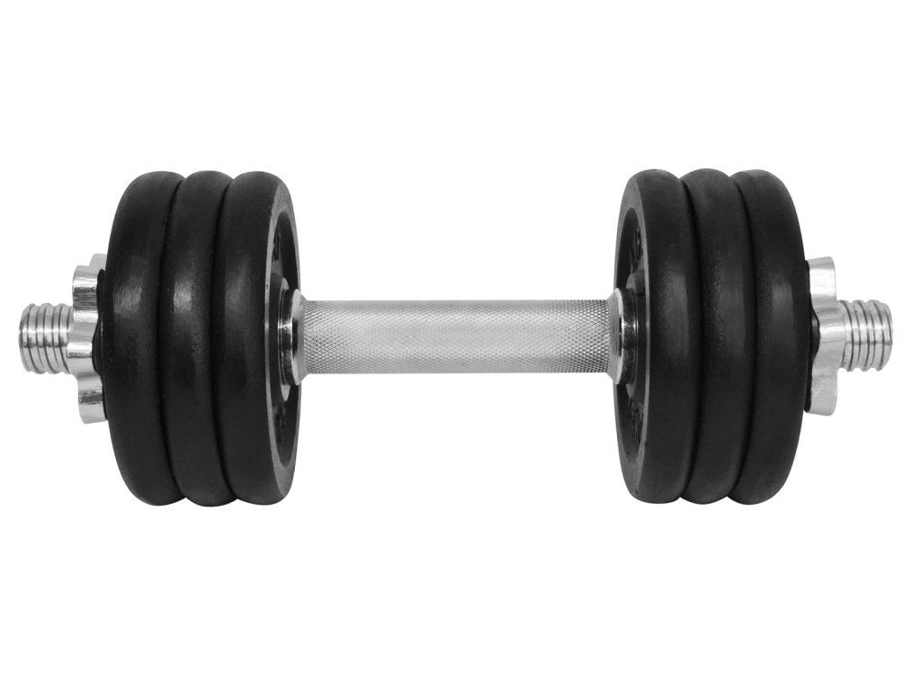 Činkový set LIFEFIT 11 kg je vyroben z vysoce kvalitních kovových materiálů. Hřídele činek jsou na obou koncích opatřeny závitem pro snadné zajištění závaží pomoci bezpečnostních matic. Zátěžové kotouče jsou pak vyrobeny z kovu a jsou lakovány pro zvýšení odolnosti proti vlhkosti. Kvalitní materiály, dobrá povrchová úprava a snadná výměna zátěže jsou vlastnosti, které řadí tyto jednoručky mezi nepostradatelnou součást domácí posilovny. - činkový set 11 kg - hřídel o délce 35 cm, hmotnosti cca 2,3 kg, průměru 30 mm - 2 kusy bezpečnostních matic - 6 kusu - kotouč 1,5 kg - hmotnost jedné činky lze nastavit na 5/8/11 kgDoplňkové parametry