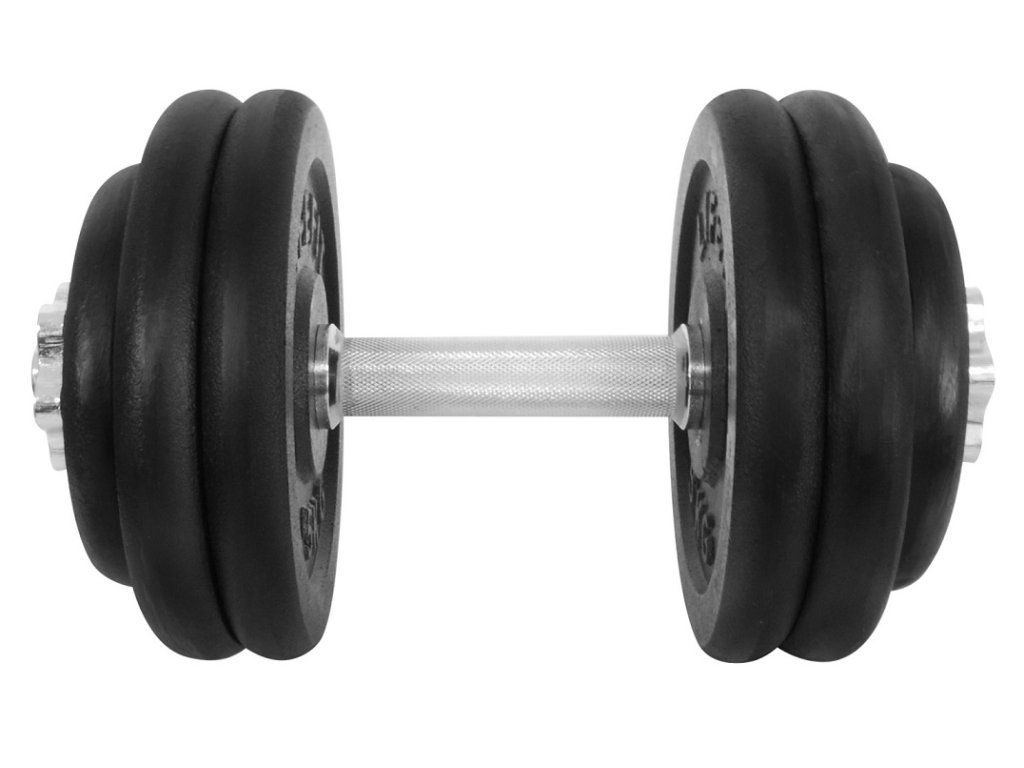 Činkový set LIFEFIT 27 kg je vyroben z vysoce kvalitních kovových materiálů. Hřídele činek jsou na obou koncích opatřeny závitem pro snadné zajištění závaží pomoci bezpečnostních matic. Zátěžové kotouče jsou pak vyrobeny z kovu a jsou lakovány pro zvýšení odolnosti proti vlhkosti. Kvalitní materiály, dobrá povrchová úprava a snadná výměna zátěže jsou vlastnosti, které řadí tyto jednoručky mezi nepostradatelnou součást domácí posilovny. - činkový set 27 kg - hřídel o délce 35 cm, hmotnosti cca 2,3 kg, průměru 30 mm - 2 kusy bezpečnostních matic - 2 kusy - kotouč 2,5 kg - 4 kusy - kotouč 5 kg - hmotnost jedné činky lze nastavit na 7/12/17/22/27 kgDoplňkové parametry
