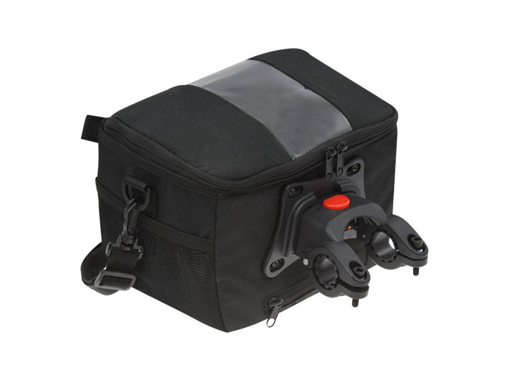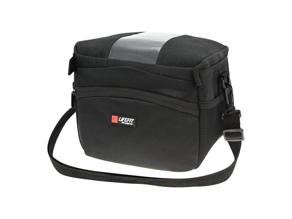 Cyklistická brašna na řídítka Lifefit - vrchní dotykové pouzdro na telefon - ochranná pláštěnka - nastavitelný ramenní popruh - vyrobena z odolného materiálu s povrchovou úpravou odpuzující vodu - vnitřní výztuž - reflexní prvky - upevnění pomocí zámku QUICK CLIP na MTB řídítka kola (průměr cca 3,1 cm - bez podložky; cca 2,5 cm - s podložkou) - rozměry: 15 x 16 x 23 cm (š x v x hl)Doplňkové parametry