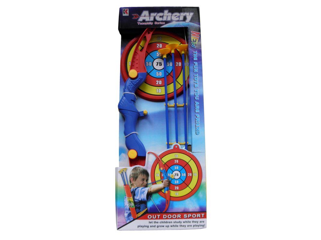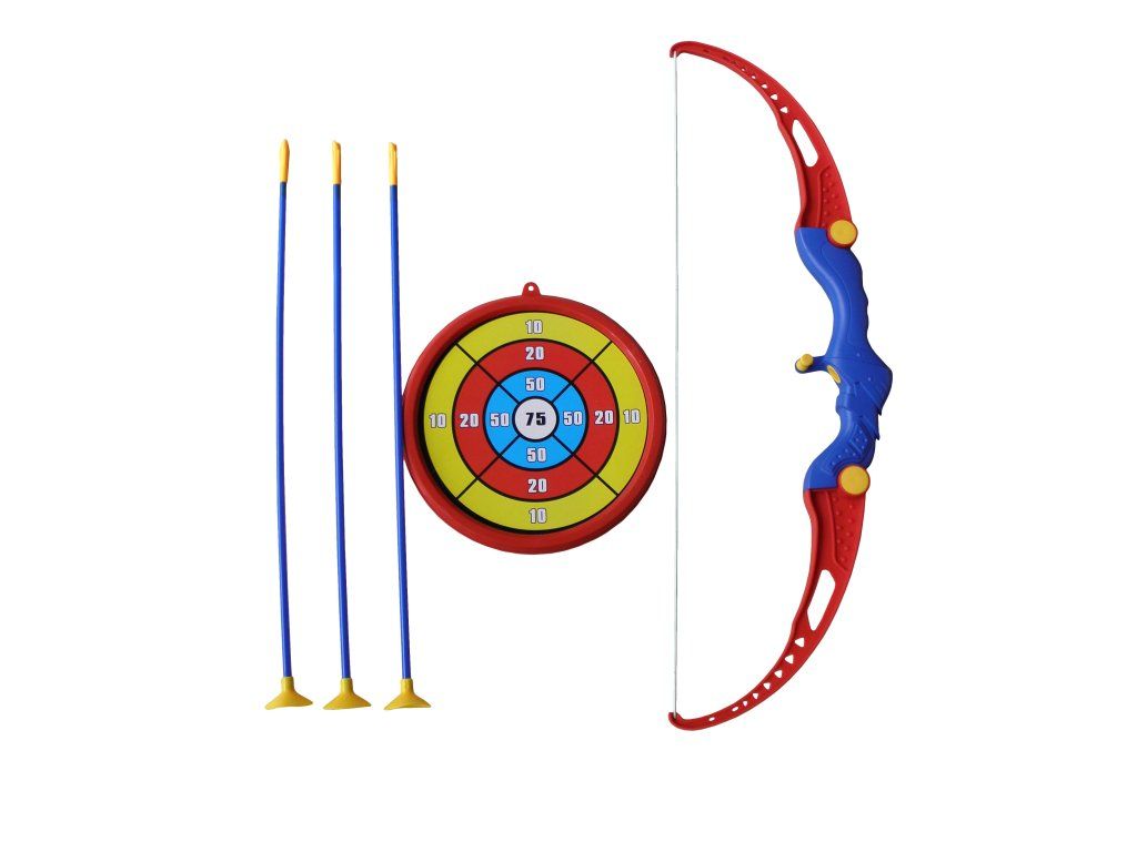 Dětská sada Luk a šípy. Sada obsahuje: luk - 65 x 20 x 4 cm šípy s přísavkou - 3x - 50 cm terč - průměr 24 cm Materiál: ABS, PVC, PP Certifikace: EN71Doplňkové parametry