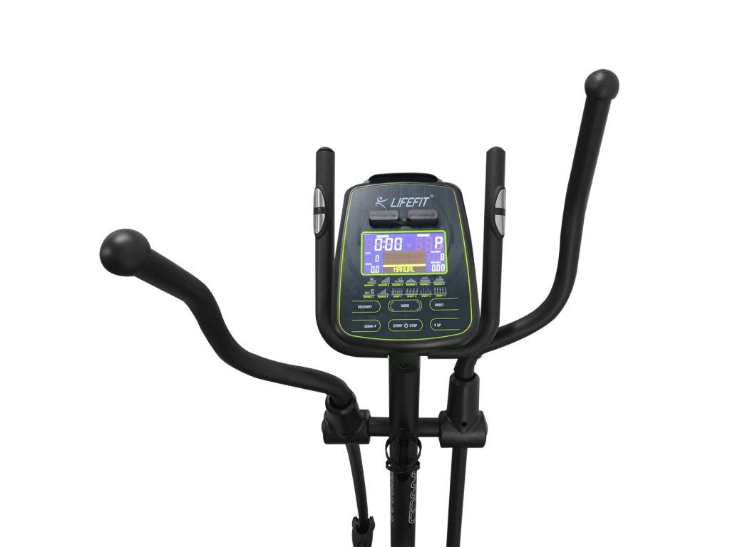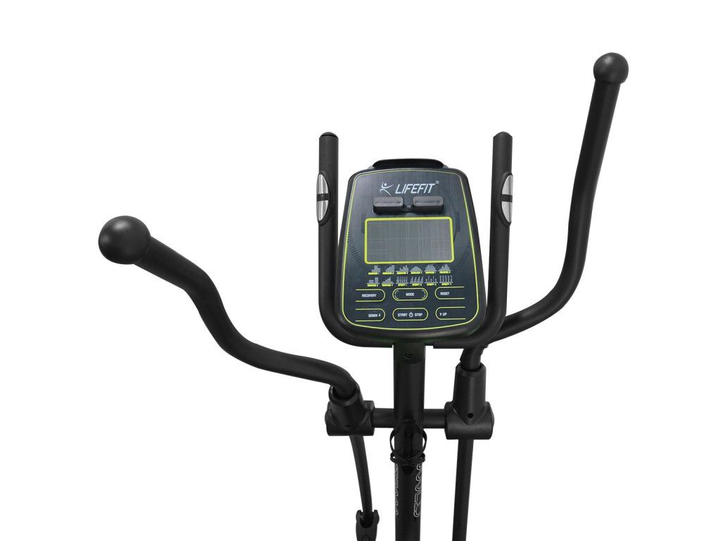 Eliptický ergometr LIFEFIT CT7200 s vysoce kvalitním strojovým zpracováním a podsvíceným dotykovým displejem computeru napoví, že tento trenažér patří ke špičce ve své třídě. Díky robustnímu rámu je velice stabilní a unese až 150 kg. Displej zobrazuje všechny důležité tréninkové informace jako například spotřebu energie, čas, vzdálenost, spálené kalorie a tepovou frekvenci. Můžete si vybrat z 16 přednastavených profilových programů nebo si nastavit až 4 programy podle vlastních představ. K dispozici je také oblíbený HRC program s přednastavenými hodnotami 55%, 75%, 95% nebo si můžete nastavit vlastní. Chcete-li se zaměřit na svůj výkon, WATT program je taky hned po ruce. Po tréninku si pak můžete zkontrolovat míru zotavení (funkce Recovery). Na madlech najdete snímače tepové frekvence. - stabilní rám s nosností 150 kg - zátěžové kolo (setrvačník) 7 kg - 3-dílné kliky se strojovými zapouzdřenými ložisky - délka kliky pedálu 38 cm - podsvícený LCD displej s držákem na telefon nebo tablet - držák na láhev - HRC program: stroj zvyšuje nebo snižuje zátěž tak, aby uživatel byl neustále v optimální (nastavené) zóně tepové frekvence - WATT program: stroj zvyšuje nebo snižuje zátěž tak, aby uživatel vykonával nastavený výkon (například zvýší zátěž při snížení kadence šlapání) - funkce computeru: čas, rychlost, vzdálenost, kalorie, tepová frekvence, výkon (Watt), otáčky za minutu - elektronické ovládání zátěže s 32 stupni - 16 přednastavených programů - 4 uživatelské programy - 2 transportní kolečka - rozměry stroje: 145 x 65 x 162,5 cm (HxŠxV) - hmotnost stroje: 50 kgDoplňkové parametry