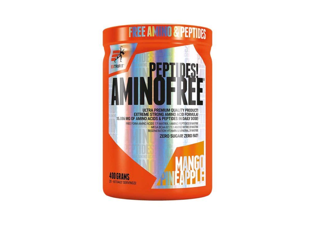 Jedná se o sofistikovanou kombinaci výhradně volných (free form) aminokyselin v plném aminospektru s naprosto novou a revoluční formou značkových peptidů. Tyto patentované peptidy jsou v produktu zastoupeny v masivní míře a jedná se o peptidy těchto nejdůležitějších aminokyselin: arginin, glutamin, leucin, isoleucin, valin. Plné spektrum výhradně volných aminokyselin s vysokou dávkou peptidů je velmi důležité pro růst a regeneraci svalů při intenzivním tréninku. Pozor, svaly se neskládají jen z BCAA, tedy suplementace pouze BCAA je chybou. Je nutné do svalů doplňovat všechny aminokyseliny! AminoFree® Peptides je vysoce profesionální aminokyselinový a peptidový komplex určený pro nejnáročnější sportovce. Je složen výhradně z TOP komponent v nejvyšší kvalitě, jaká je v současnosti možná a dostupná. Pokud hledáte nejlepší amino produkt na trhu, pak je to zcela jednoznačně AminoFree® Peptides. Věnujte pozornost etiketě, která je sestavena naprosto transparentně a složení je odhaleno do absolutních detailů. Zcela přesně víte, kolik je peptidů, kolik je volných aminokyselin, které aminokyseliny jsou v jaké formě atd. Toto je typické pro Extrifit. Víte, co konzumujete! Žádné tajemné směsi nebo nejasné popisky. Na tom si zakládáme. Na poctivosti k zákazníkovi. Extrifit nikdy nikoho nekopíruje a nikdy nevyrábí jen to, co ostatní. Extrifit vyvíjí a tvoří produkty odpovídající nejnovějším trendům a poznatkům sportovní výživy a AminoFree® PEPTIDES je úplným vrcholem v novém levelu supermoderních a superúčinných aminokyselinových a peptidových suplementů. AminoFree® Peptides je produkt obsahující extrémně silnou dávku volných aminokyselin (free form) s patentovanými peptidy PepForm®. V jediné odměrce dodáte svému tělu 5296 mg free form aminokyselin a peptidů. V denní dávce (3 odměrky) plných 15 886 mg! Tato účinná směs je obohacena o synergicky působící vitamín B6 (pyridoxin) ve vysoce funkční vysoké denní dávce 250 % RHP a nejdůležitější regenerační minerály draslík a hořčík v optimalizované denní dávce 15 % a 20 % RHP. V denní dávce (3 odměrky) je obsaženo 15 886 mg aminokyselin! 12 866 mg volných aminokyselin 3021 mg peptidů PepForm®! 5000 mg BCAA 3000 mg glutaminu 2500 mg amino nitro Co jsou to volné aminokyseliny, jistě víte. Jsou to základní stavební látky bílkovin, ze kterých je složen lidský sval. V denní dávce tohoto produktu je obsaženo 5000 mg volných aminokyselin BCAA, 3000 mg volného glutaminu a 12 866 mg aminokyselin se specifickým účinkem, jako je arginin a citrulin, beta alanin a celé komplexní spektrum všech nezbytných volných aminokyselin. Účinek volných aminokyselin v AminoFree® Peptides je umocněn obsahem 3200 mg PepForm® peptidů v denní dávce (tedy celých 1067 mg v jediné odměrce!). Jedná se o patentované peptidy PepForm® aminokyselin leucin, valin a isoleucin (tedy BCAA), dále o peptidy glutaminu a peptidy argininu. U peptidů těchto aminokyselin, jež jsou zásadní pro regeneraci a tvorbu svalové hmoty, je prokázána ještě lepší stabilita, stravitelnost a vstřebatelnost! Unikátnost AminoFree® Peptides kombinace volných aminokyselin a peptidů je daleko nejúčinnější sypká forma našeho produktu je velmi praktická – můžete zvolit potřebnou dávku sami a nápoj můžete velmi snadno kdekoliv během chvilky připravit možnost zakoupit jednotlivé dávky v samostatných sáčcích aminokyseliny v této "free form & peptides" formě jsou skvěle stravitelné a využitelné výrobek neobsahuje žádná pojiva jako tablety žádné přidané sacharidy žádné nastavování hmotnosti zbytečnými složkami – pouze aminokyseliny a peptidy díky prakticky nulovému obsahu cukru a tuku je vhodný i pro ty, kdo usilují o minimalizaci podkožního tuku výrobek obsahuje pouze přírodní barviva, tedy žádná zbytečná chemie! Pro koho je produkt určen? pro sportovce silových sportů pro svůj antikatabolický účinek - pokud chcete dosáhnout co nejvyššího silového výkonu, AminoFree® Peptides ochrání Vaše svaly při intenzivním tréninku před katabolismem a podpoří regeneraci po výkonu pro všechny, kdo usilují o maximální svalový růst – směs aminokyselin a peptidů má anabolický efekt pro všechny, kdo si chtějí zachovat svalovou hmotu a přitom vyrýsovat – jak kulturisté před soutěží, tak kondiční cvičenci pro všechny sportovce silově - vytrvalostních disciplín, jako je třeba hokej, MMA, motorsport, box apod. – skvěle podpoří regeneraci po náročném sportovním výkonu Doporučené dávkování: Závisí na tělesné hmotnosti, sportovní aktivitě a složení stravy. Možnosti použití: 1 - 3 odměrky před tréninkem nebo po tréninku. Denní dávka = 3 odměrky = 20 g. Návod na přípravu: Obsah odměrky (sáčku) rozmíchejte ve 100 - 300 ml vody, nemíchejte v šejkru! (mřížka šejkru vytvoří mohutnou pěnu). Obsah 1 odměrky = 6,7 g (1 sáčku) zamíchejte pouze lžičkou ve vodě (tak se nevytvoří žádná pěna). Tabulka nutričních hodnot: Průměrný obsah energie a živin: 20 g Energetická hodnota 243 kJ / 57 kcal Tuky 0 g - z toho nasycené mastné kyseliny 0 g Sacharidy 0,9 g - z toho cukry 0,2 g Vláknina 0 g Bílkoviny 2,8 g Sůl 0,02 g Obsah účinných látek: 20 g (% RHP) Celkem peptidů aminokyselin 3 200 mg Peptidy L-Glutaminu 800 mg Peptidy L-Argininu 800 mg Peptidy L-Leucinu 800 mg Peptidy L-Isoleucinu 400 mg Peptidy L-Valinu 400 mg Celkem peptidů BCAA 1 600 mg Vitamíny a minerály: 359,8 mg Vitamin B6 (pyridoxine HCl) 3,5 mg (250 %) Draslík (citran draselný) 300 mg (15 %) Hořčík (citran hořečnatý) 56,3 mg (15 %) Aminokyseliny: 20 g Volné* Peptidy L-glutamin* 3 000 mg 3 000 mg* - Kyselina glutamová 574 mg - 574 mg L-Tryptofan* 100 mg 66 mg* 34 
