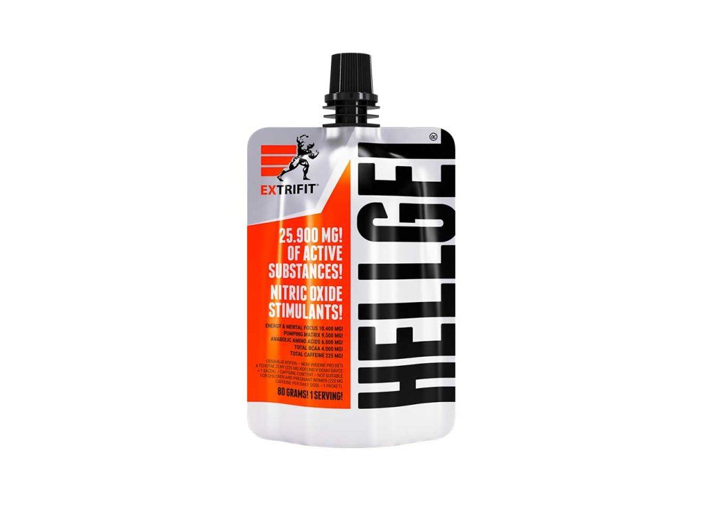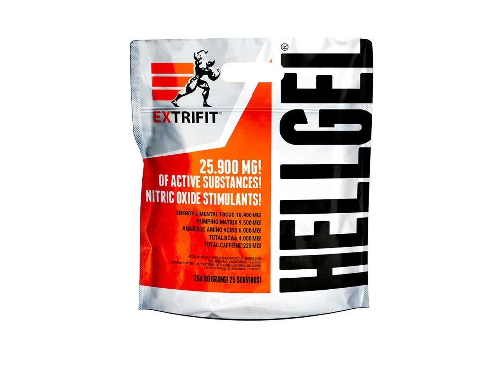 ! Obsahuje kofein, není vhodné pro děti a těhotné ženy. Denní dávka (80 g) obsahuje 225 mg kofeinu. Produkt není vhodný pro osoby trpící přecitlivělostí na kofein. Hellgel® je dlouhodobým bestsellerem v nabídce produktů značky Extrifit. Jedná se o jeden z nejpopulárnějších výrobků z řady NO stimulantů na našem trhu, které jsou jedním z hlavních trendů sportovní výživy určené pro sportovce silových a kontaktních sportů. Na vývoji produktu se podíleli kulturisté Extrifit týmu, například Vojtěch Koritenský – profesionální kulturista a účastník Mr. Olympia, nebo Mr. Universe Slavoj Bednář. Hellgel® je tak nedílnou součástí jejich předtréninkové suplementace. I oni totiž chtějí dosáhnout maximálního napumpování svalů a zažít naprosto jinou dimenzi intenzity tréninku. Použití: S tímto novým suplementem na bázi gelu, který je určen k okamžité konzumaci, můžete dosáhnout v tréninku revolučních výsledků. Žádná příprava, žádné mixování – vše je hotové. To, co Vás zaujme a nadchne už při prvním kontaktu s produktem Hellgel® (pekelný NO gel), je to, že: je hotový v jednorázovém sáčku žádné mixování vůbec nepotřebujete šejkr v sáčku je hotová dávka Extrifit tak uvádí ve světové premiéře první NO produkt ve formě hotového gelu vezmete si s sebou na cesty tolik jednorázových sáčků, kolik potřebujete sáček si jen dáte do kapsy a odcházíte na trénink žádné prášení po kuchyni žádné odsypávání z dózy žádné polykání tablet s malým množstvím účinných látek žádné vážení či odměřování dávky jen odšroubujete uzávěr a "vysajete" obsah sáčku – toť vše a hotovo dávka až na 2 měsíce (až 25 tréninků) Základní charakteristika výrobku Hellgel®: Hellgel® se řadí mezi stimulanty produkce NO (oxidu dusnatého). Jeho hlavním účinkem, který sportovci pozorují po suplementaci, je výrazné napumpování svalů. Stimulace produkce NO je dosaženo unikátní kombinací účinných látek, především argininu AKG a volného argininu společně s citrulinem. Stimulační a energetické účinky suplementu Hellgel® zajišťují oblíbené látky beta-alanin, taurin, kofein a extrakt ze zeleného čaje, které podpoří Vaši koncentraci na trénink. Tento Energy & Mental Focus matrix je dále doplněn o kreatin monohydrát – nejověřenější formu kreatinu pro dosažení nejvyšší intenzity tréninku. Kreatin zvyšuje fyzickou výkonnost při po sobě jdoucích krátkodobých intervalech vysoce intenzivního výkonu, jako je například posilování, sprintování nebo boxování. Účinku dosáhnete při minimální dodávce 3 g kreatinu denně – jeden sáček produktu Hellgel® obsahuje celkem 5 g! Hellgel® dále obsahuje větvené aminokyseliny leucin, izoleucin, valin a aminokyselinu glutamin: neesenciální aminokyselina, která je bohatě zastoupena ve svalové tkáni (při intenzivním tréninku dochází k vyšší spotřebě glutaminu ve svalu, proto je při náročném výkonu a snaze o nárůst svalové hmoty vhodná jeho suplementace). Obsahuje plných 25 900 mg účinných látek v souladu s českou a evropskou legislativou! Hellgel® je světovým unikátem, protože Extrifit byl první firmou, která použila gelovou formu pro NO produkt. Hellgel® je nesmírně populární dnes již po celé Evropě. Největší výhodou Hellgelu je to, že nemusíte nic připravovat, nic míchat. Kompletní substance je hotová a je připravena k okamžitému použití. Kulturisté si nosí sáčky stále u sebe. Stačí vzít pár balíčků, které máte po ruce, a můžete je okamžitě použít. Dávka je vypočítána pro použití jak středně pokročilými, tak vyspělými sportovci. Hellgel® neobsahuje žádné cukry. Hotový gel pro okamžité použití i na cestách Zcela bez sacharidů a cukrů, takže je použitelný i při nejpřísnější dietě Silné zastoupení "pumpovacích" látek Energy & Mental Focus matrix pro maximální intenzitu a soustředění Vysoký obsah anabolických aminokyselin, z toho 4 000 mg BCAA Celkem 25 900 mg účinných látek v jediném sáčku! Hellgel® – to je pokročilý NO produkt s komplexním růstovým složením ve formě jednorázového gelu. Nejprodávanější NO posledních let! Doporučené dávkování: denní dávka = 1 sáček (80 g) užívejte 15–20 min před tréninkem možnost ředění do 180 ml vody po otevření určeno k okamžité konzumaci Tabulka nutričních hodnot: Výživové údaje: 1 sáček (80 g) 100 g Energetická hodnota 332 kJ / 79 kcal 419 kJ / 99 kcal Tuky 0 g 0 g - z toho nasycené mastné kyseliny 0 g 0 g Sacharidy 0 g 0 g - z toho cukry 0 g 0 g Vláknina 0,7 g 0,9 g Bílkoviny 0 g 0 g Sůl 0,06 g 0,08 g Složení – obsah účinných látek: 1 sáček (80 g) ENERGY & MENTAL FOCUS 10 400 mg Kreatin monohydrát 5 000 mg Beta-alanin* 3 000 mg Taurin* 2 000 mg Extrakt ze zeleného čaje 250 mg - z toho přírodní kofein 30 % 75 mg Kofein bezvodý 150 mg PUMPING MATRIX 9 500 mg L-citrulin DL-malát 4 500 mg - z toho L-citrulin* 3 000 mg L-arginin AKG 4 000 mg - z toho L-arginin* 2 500 mg L-arginin báze* 1 000 mg ANABOLIC AMINO ACIDS 6 000 mg L-leucin* 2 000 mg L-izoleucin* 1 000 mg L-valin* 1 000 mg L-glutamin* 2 000 mg Celkový obsah kofeinu 225 mg Celkový obsah látek 25 900 mg * obsah volných aminokyselin Složení: Platí pro všechny příchutě Energy & Mental Focus, Pumping Matrix, Anabolic Amino Acids (viz tabulka) Přídatné látky: voda, stabilizátor: xanthan, aroma, regulátor kyselosti: kyselina citronová, sladidlo: sukralóza, konzervanty: sorban draselný a benzoan sodný, zahušťovadlo: guma guar Upozornění: Doplněk stravy. Se sladidlem. Obsahuje kofein – není vhodné pro děti a těhotné ženy (225 mg v denní dávce = 1 sáček). Nepřekračujte doporučenou denní dávku. Uchovávejt