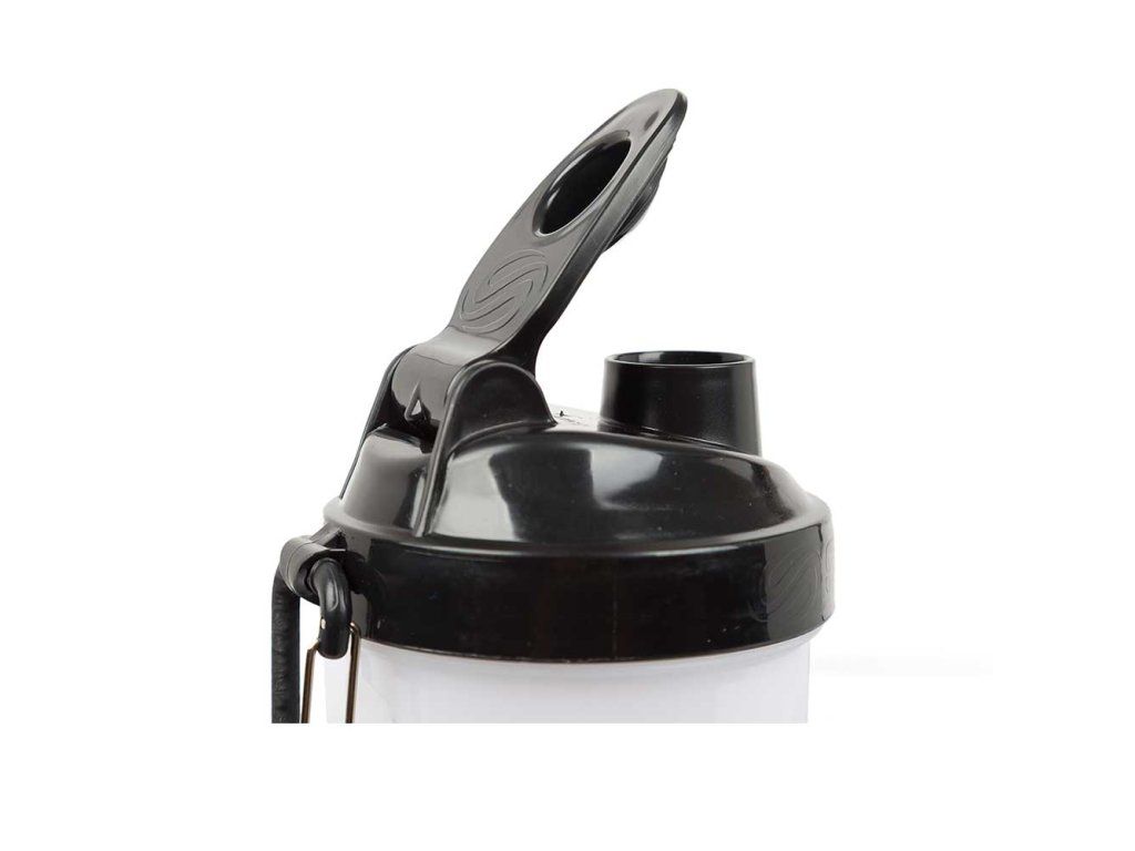 Jeden z odnímatelných zásobníků obsahuje vloženou přihrádku se čtyřmi odděleními na tablety či kapsle, přihrádku lze ale i vyjmout, objem takto získaného prostoru (např. pro odsypání proteinu nebo gaineru) je 150 ml. Druhý (spodní) zásobník má objem dalších 200 ml. Samotný šejkr má stupnici od 100 do 600 ml. BPA a DEHP free. Obsah balení: šejkr 2 zásobníky objem instantníhoproteinu*) šejkr 600 ml - 1. zásobník 150 ml cca 50 g 2. zásobník (spodní) 200 ml cca 65 g *) instantní "nadýchaný" proteinový suplement uvedené údaje se mohou dle typu suplementů lišitDoplňkové parametry