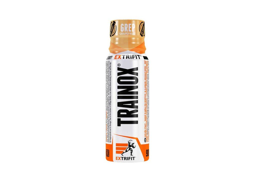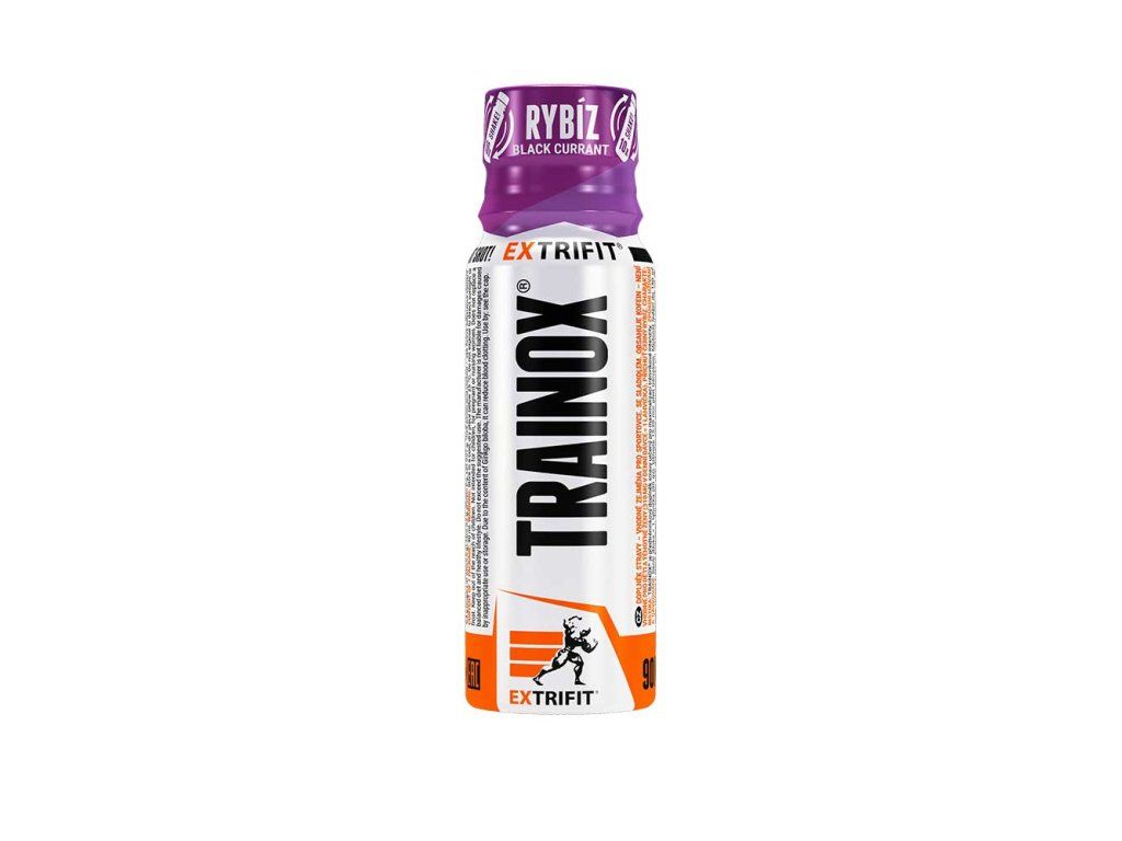 ! Obsahuje kofein, není vhodné pro děti a těhotné ženy. Denní dávka (1 shot) obsahuje 310 mg kofeinu. Produkt není vhodný pro osoby trpící přecitlivělostí na kofein. TRAINOX® je doplněk stravy určený pro totální maximalizaci tréninkové intenzity. Jedná se o multikomponentní produkt obsahující zcela novou a brutálně silnou směs účinných látek určených pro předtréninkové použití. Znáte AGREZZ®? Evropský hit a bestseller mezi pre-workouty? Máte ho v oblibě? Tak TRAINOX® si zamilujete také. Ještě silnější složení a díky jednorázovým shotům připraveno rovnou ke konzumaci! Tekutá forma produktu navíc zajišťuje rychlou a výbornou vstřebatelnost. Účinky každé dávky pre-workoutu TRAINOX®: Podpora krevního oběhu – znáte ten pohled do zrcadla na maximálně napumpované svalstvo po vyčerpávající sérii? S produktem TRAINOX® si ho budete užívat ještě víc díky pečlivě vybranému extraktu z borovice přímořské. Přidaný extrakt z Ginkgo biloba navíc zajistí, že i v těch nejmenších částech svalových vláken bude dosaženo plné dodávky krve. Studenti a starší sportovci také ocení jeho prokázané účinky na kognitivní (mozkovou) výkonnost. Podpora výkonu – nechce se vám na trénink po náročném dni? Potřebujete zvýšit fyzickou kapacitu* během dlouhých tréninků? Pak se spolehněte na obsažený výtažek z guarany s 10% obsahem přírodního kofeinu a dalších 300 mg kofeinu v čisté formě. Připočítejte adaptogenní účinky extraktu z rozchodnice růžové a vychází jasný výsledek – enormních 310 mg kofeinu v každé dávce a pocit, že následující série může mít klidně tisíc opakování! Podpora dýchacího systému – díky extraktu z kurkumy budou pro vás jakékoliv supersérie, gigantické série, shazované série a další intenzifikační techniky úplná hračka. Kontrola tělesné hmotnosti – extrakt z pomerančovníku hořkého s vysokým obsahem synefrinu (95 %) naplno podpoří vaši snahu o kontrolu tělesné váhy. Nenechte se ale zmást, TRAINOX® je vhodný nejenom do redukční a udržovací fáze, ale díky dobře promyšlenému složení i do těch nejnáročnějších objemů! Antioxidační účinky – náročná fyzická aktivita vytváří tzv. oxidanty, které mohou mít v těle při nedostatečném příjmu antioxidantů negativní vliv. Proto jsme do každé lahvičky přidali selen ve vysoce využitelné chelátové formě, a to na úrovni plných 100 % denní potřeby dospělého člověka! Ženy také ocení příznivý vliv selenu na vlasy a nehty, muži pro změnu pozitivní vliv na tvorbu spermií. Podpora jaterních funkcí – díky cholinu a vysokoprocentnímu extraktu z černého pepře si na své přijdou i sportovci dbající na vnitřní zdraví. Je známo, že játra jsou hlavním detoxikačním a metabolickým orgánem, a proto každý obsah TRAINOX® lahvičky myslí i na ně. * Zmíněný účinek kofeinu byl uznán v případě příjmu min. 3 mg/kg tělesné hmotnosti, a sice hodinu před výkonem, přičemž pravidelní konzumenti kofeinu alespoň jeden den před výkonem příjem kofeinu vynechají. Další účinné látky v pre-workoutu TRAINOX®: Beta-alanin, citrulin, tyrozin, ornitin a taurin – už si nemusíte hrát na malého chemika, do každého shotu jsme přimíchali ohromných 10 000 mg předtréninkových aminokyselin ve vyvážené a vysoce účinné kombinaci. Glukuronolakton – celých 1000 mg glukuronolaktonu v pouhých 90 ml. Ty nejlepší energetické nápoje na trhu obsahují ve stejném objemu o 75 % méně glukuronolaktonu než TRAINOX®! DMAE – společně s glukuronolaktonem patří do novodobých předtréninkových látek, které najdete jen v těch nejpokročilejších produktech. Každá lahvička skrývá maximální povolenou denní dávku DMAE, kterou můžete v ČR pořídit. Produkt nabízíme také v cenově výhodném balení obsahujícím 15 jednorázových shotů. Z boxu vytvoříte elegantní výstavní stojánek vhodný například do sportovních obchodů či posiloven. Doporučené dávkování: denní dávka = 1 lahvička (90 ml) užívejte 15–20 min před tréninkem možnost ředění do 100 ml vody po otevření určeno k okamžité konzumaci při prvním užití doporučujeme polovinu lahvičky pro otestování citlivosti na obsažené účinné látky Tabulka nutričních hodnot: Výživové údaje: 90 ml (1 dávka) 100 ml Energetická hodnota 188 kJ / 45 kcal 209 kJ / 50 kcal Tuky 0 g 0 g - z toho nasycené mastné kyseliny 0 g 0 g Sacharidy 1,7 g 1,8 g - z toho cukry 0 g 0 g Vláknina 0,2 g 0,2 g Bílkoviny 0 g 0 g Sůl 0,01 g 0,01 g Obsah účinných látek: 90 ml (1 dávka) L-citrulin DL-malát 6000 mg - z toho L-citrulin* 4200 mg Beta-alanin* 3000 mg Taurin* 2000 mg GlyceroMax® 2000 mg - z toho zahušťovadlo: glycerol 65 % 1300 mg L-tyrozin* 1000 mg Cholin bitartrát 1000 mg - z toho cholin 400 mg Glukuronolakton 1000 mg L-ornitin HCl 625 mg - z toho L-ornitin 500 mg Kofein bezvodý 300 mg Extrakt z guarany 100 mg - obsah přírodního kofeinu 10 % 10 mg DMAE bitartrát 54,1 mg - z toho DMAE 20 mg Extrakt z kurkumy 52,7 mg - z toho kurkuminoidy 95 % 50 mg Extrakt z kůry borovice přímořské 52,7 mg - z toho proanthokyanidiny 50 mg Extrakt z rozchodnice růžové 50,8 mg - z toho rosavin 4 % 2 mg Extrakt z Ginkgo biloba 40 mg - z toho flavonoglykosidů 24 % 9,6 mg - z toho terpenolaktonů 6 % 2,4 mg Extrakt z pomerančovníku hořkého 21,1 mg - z toho synefrin 95 % 20 mg L-selenomethionin 11,8 mg - z toho selen 55 mcg (100 % RHP) Extrakt z černého pepře 5,3 mg - z toho piperin 95 % 5 mg Celkový obsah kofeinu 310 mg RHP - referenční hodnota příjmu (dříve doporučená denní dávka) * obsah volných aminokyselin Složení: Voda, L-citrulin DL-malát, beta-alanin, taurin, GlyceroMax® (z toho zahušťovadlo: glycerol 65 %, protispékavá l