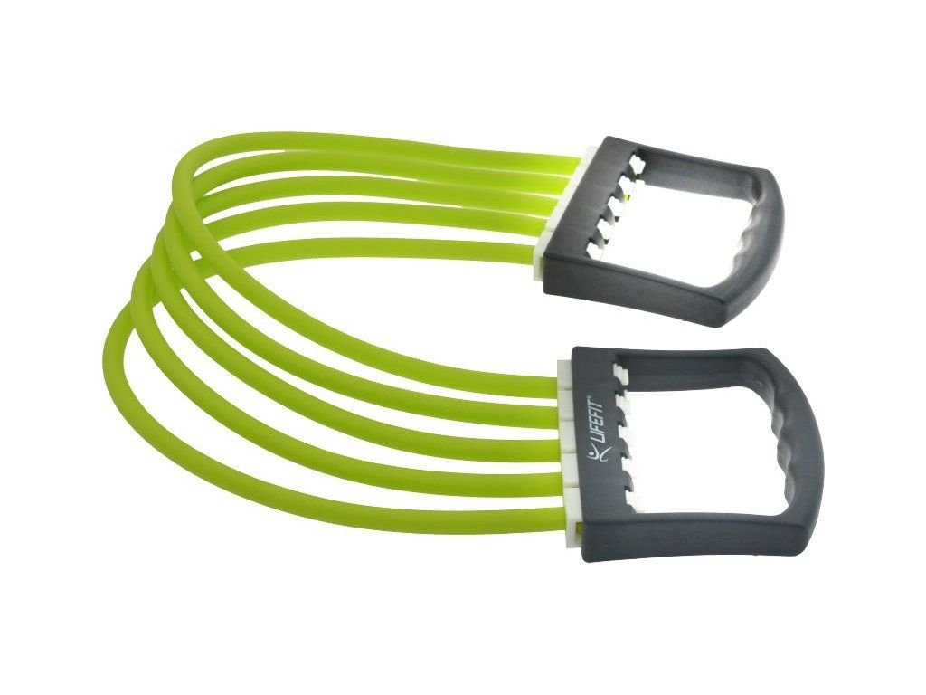 Gumový posilovač LIFEFIT RUBBER EXPANDER je univerzální posilovač určený pro posilování všech svalových partií - ramen, paží, hrudníku, zad i vnitřních a vnějších stehen. Cvičení s ním je jednoduché a efektivní. Gumová lana zajišťují přirozený odpor při cvičení a lehká madla dodávají potřebný komfort. Expandér je vyroben z materiálů odolných proti vlhku a potu se zvýšenou odolností proti poškození. Gumový posilovač LIFEFIT je skladný a je možné jej snadno přenášet. Je tak vhodný pro všestranné využití doma i na dovolené. - gumový posilovač - 5 ks odnímatelných pružin z gumy - lehká ergonomická madla - extra odolná gumová lana - vhodné pro všestranné posilování celého těla - tuhost každé gumy je 4,5-6,8kgDoplňkové parametry