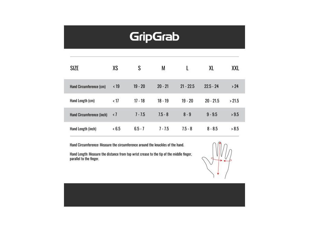 | Délka ruky (cm) | 17 - 18 | 18 - 19 | 19 - 20 | 20 - 21,5 | > 21,5 |