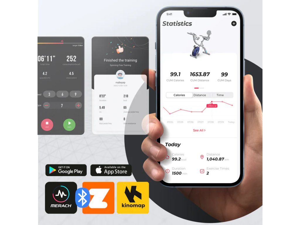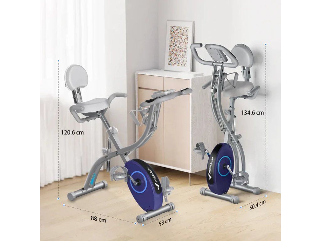 4-v-1 cvičení celého těla – podporuje vzpřímené a ležaté šlapání, plus trénink paží a zad. Nastavitelný odpor – 16 úrovní magnetického odporu pro přizpůsobení zátěže. Inteligentní sledování – interaktivní LCD displej s měřením srdečního tepu. Komfort a pohodlí – nastavitelná výška sedadla, pohodlný polštář a držák na láhev s vodou. Prostorově úsporný design – skládací rám, nosnost 136 kg, vhodný pro uživatele s výškou 132 cm – 185 cm. 4v1 rotoped Tento inovativní skládací design nabízí jak vzpřímenou, tak ležící polohu, stejně jako trénink paží a zad. Vyzkoušejte různé fitness režimy a přizpůsobte si trénink tak, aby zapojil všechny hlavní svalové skupiny. Jízda ve vzpřímené poloze Jízda v leže Posilování paží Posilování zad Maximální pohodlíVylepšené sedadlo a zpracováníVe srovnání s tradičními rotopedy byl tento model výrazně vylepšen z hlediska pohodlí sedadla, které poskytuje dostatek prostoru a vynikající zážitek z jízdy. Snadné nastavení intenzity tréninku16 úrovní magnetického odporuVylepšený systém magnetického odporu zajišťuje plynulejší a tišší jízdu. Díky 16 úrovním odporu můžete snadno nastavit intenzitu tréninku, udržet strukturovaný tréninkový rytmus a efektivně dosáhnout svých fitness cílů. Vynikající odolnostNastavitelná výška sedadlaTento skládací rotoped je vyroben z vysoce kvalitní oceli a unese až 136 kg. Nastavitelná výška sedadla vyhovuje uživatelům od 132 cm do 185 cm, takže je ideální pro více členů rodiny. Vysoce kvalitní materiályVylepšené materiály a barvy zvyšují odolnost, zabraňují opotřebení a poskytují zářivý povrch odolný proti vyblednutí. Chytrá zařízení pro větší efektivituInteraktivní LCD displej sleduje průběh tréninku a data v reálném čase. Vestavěný držák na tablet vám umožní sledovat tréninková videa během cvičení. Magnetický odporový systémZajišťuje plynulou a tichou jízdu, takže se můžete soustředit na trénink bez rušivých vlivů.Snadné přemístěníDíky integrovaným transportním kolečkům lze kolo snadno přemístit.Kompatibilní aplikacePodporuje Merach, Kinomap, Zwift, Apple Health, Google Fit, Fanton Fite (od Merach). Technické specifikace Displej: LCDHmotnost setrvačníku: 1,5 kgÚrovně odporu: 16Typ odporu: magnetickýTyp pedálů: nastavitelnéAutomatický elektromagnetický odpor: neNabíjení zařízení: anoBluetooth: anoDržáky na příslušenství: držák na telefon/tablet, držák na láhev s vodouNosnost: 136 kgRozměry ve složeném stavu: 95 x 53 x 116 cmHmotnost produktu: 18 kgBarva: šedá Software: Sledování tréninku v reálném časeBezplatné fitness kurzySledování pokrokuZprávy o historii tréninkuBezplatný tréninkový režimTréninkový režim s 3D mapouDatové výzvy a soutěžní kurzyDodavatel: Merach Fit, 298 Weiye Road, Binjiang District, Hangzhou City, Zhejiang Province, Hangzhou, zhejiang 310000, CN, +44 7704580120, info.eu@merachfit.comDoplňkové parametry