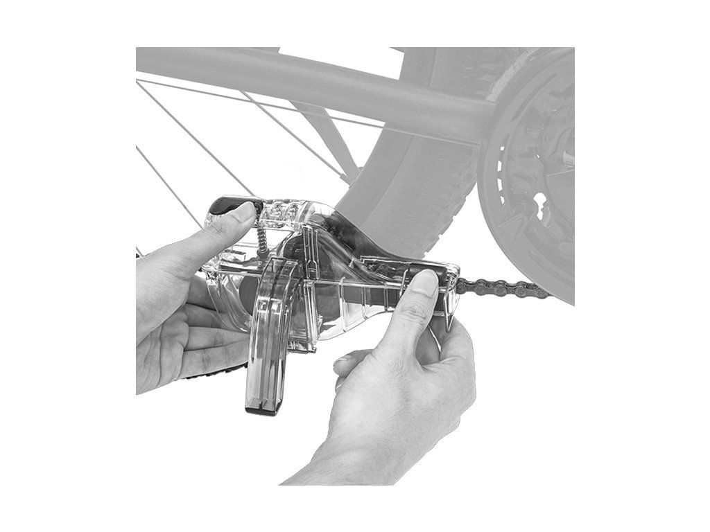 - Vybaven 2 válečky s vícesměrnými štětinami pro důkladné čištění řetězu.