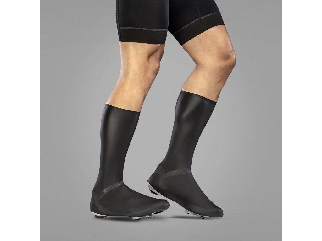 Vnější švy jsou podlepeny, aby byla zajištěna vysoká odolnost proti vodě. Extra vysoká manžeta poskytuje zásadní ochranu před stříkáním vody z předního kola a utěsňuje vysoko na lýtku, tím poskytuje větší izolaci a teplo. Na vnitřní straně PU pokryté Lycrou je měkký fleecový materiál, který je nejen příjemný na dotek, ale také na rozdíl od latexu zabraňuje podráždění pokožky. Současně zvyšuje izolační vlastnosti těchto aerodynamických potahů obuvi.