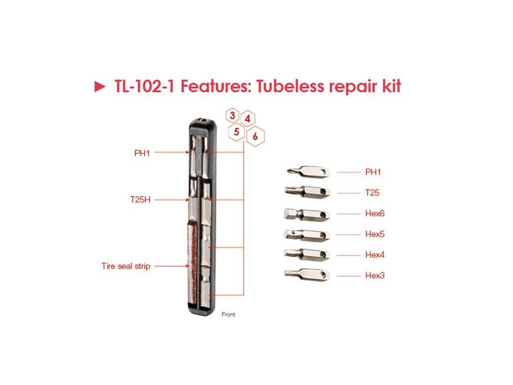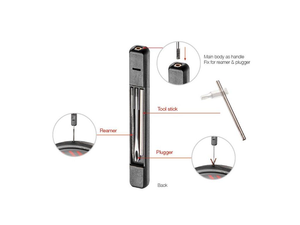 Sada na opravu bezdušových pneumatik ( výstružník, instalační trn a těsnící knoty), 6ks bitů, šestihran 3, 4, 5, 6mm / PH1 / T25