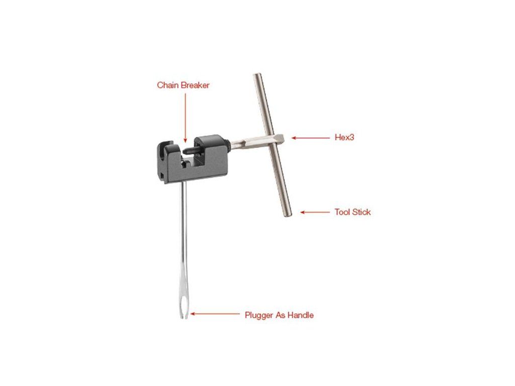 Nýtovač řetězu, montpáky, kleště na rozpojení rychlospojek, hák řetězu