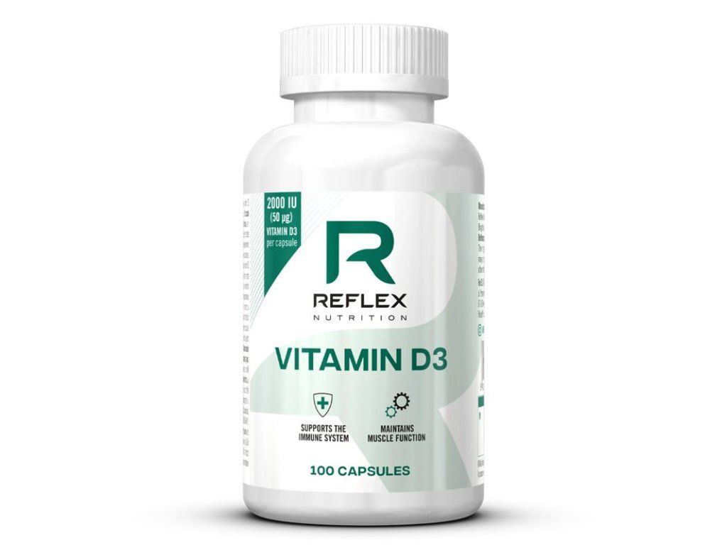 Vitamín D3Vitamín D3 přispívá k dosažení normální funkce svalového aparátu a normální funkce imunitního systému. 50 mcg cholekalciferolu (vitamin D3) v jedné kapsli. Současná legislativní opatření EU nám neumožňují popisovat další výhody tohoto produktu, tak jak to bylo možné dříve. Internetové stránky a odborná literatura však ještě stále nabízejí dostatek dostupných, objektivních informací.Vysoká kvalita, původ a čistotu použitých složek + minimum balastních aditiv.Hlavní filozofií všech produktů Reflex Nutrition je maximální kvalita a čistota použitých surovin s minimem balastních aditiv. Proto je také použita výhradně forma kapslí. Značka Reflex Nutrition nevyužívá formu levnějších tablet z důvodu vysokého obsahu balastních „pojiv a lepidel“, která mohou ve vysokém počtu případů tvořit až 50 % tablety. Doporučené dávkování: 1 kapsle obden s jídlem zapijte dostatečně vodou dávkování výrobce (1 kapsle denně) upraveno dle legislativy ČRTabulka nutričních hodnot: 1 kapsle* obsahuje % RHP Vitamín D3 50 mcg (2000 IU) 100 % *1 dávka odpovídá 1 kapsli. Balení obsahuje 100 dávek. RHP - referenční hodnota příjmu (dříve doporučená denní dávka) IU - mezinárodní jednotka vyjadřující obsah učinné látky Balení: 100 kapslíSložení: V 1 želatinové* kapsle: plnidlo (maltodextrin, mikrokrystalická celulóza), obal kapsle (hovězí želatina), cholekalciferol (vitamín D3), protispékavá látka (křemičitan vápenatý, stearan hořečnatý, oxid křemičitý) *nevhodné pro vegetariány Upozornění: Doplněk stravy. Nevhodné pro děti, těhotné a kojící ženy. Ukládejte mimo dosah dětí. Nepřekračujte doporučenou denní dávku. Nenahrazuje pestrou stravu. Používejte jako součást aktivního a zdravého životního stylu. Skladujte v suchu a chladu.Doplňkové parametry