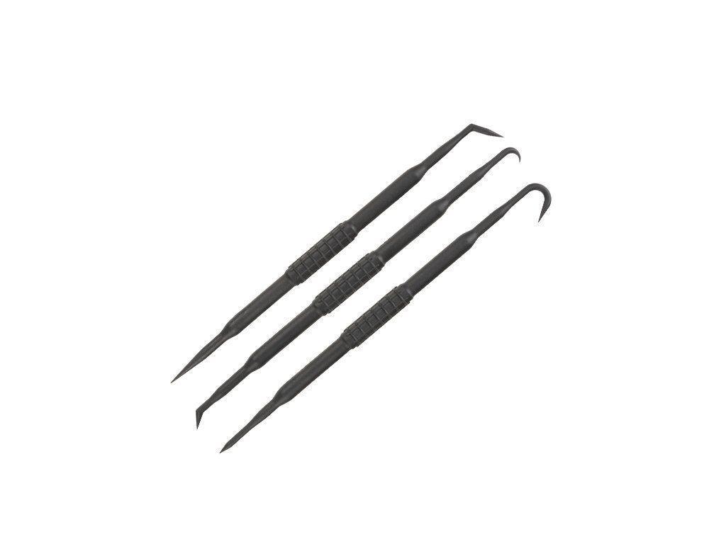 Sada háčků s různými úhly a zaobleními pro instalaci o-kroužků a jiných komponentů.