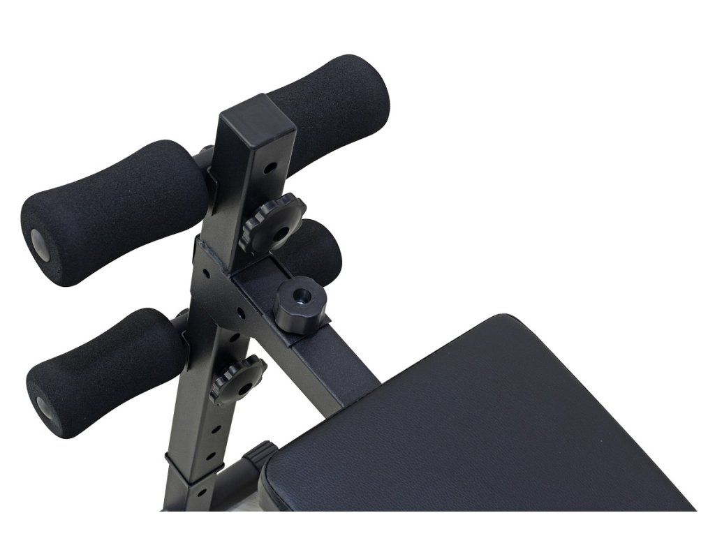 Klasická šikmá lavice pro posilování břišních svalů nabízí 5 úrovní nastavení sklonu s jednoduchým systémem přenastavení. Vhodná pro začátečníky i náročné domácí sportovce. - kvalitní polstrování pro pohodlné cvičení - zahnuté opěradlo zad - stabilní konstrukce s protiskluzovými prvky - výškově polohovatelná pěnová opěrka - určena pro domácí použití (třída H dle normy EN ISO 20957-1) - max. doporučené zatížení: 110 kg - rozměr lavice (opěradla zad): 96 x 24 cm - celkové rozměry po rozložení: 120 x 30 cm Hmotnost: 7,8 kgDoplňkové parametry