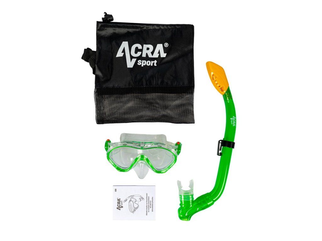 Dětský šnorchlovací set 2v1, brýle a šnorchl Širokoúhlý HD tvrzený skleněný objektiv180° panoramatický výhled a odolný tvrzený skleněný objektiv, tato dětská sada na šnorchlování poskytuje nejlepší ochranu vašich očí, potápěčské brýle odolávají poškrábání a odolávají tlaku hluboké vody a jsou navrženy speciálně pro děti pro pohodlný, jasný a bezpečný výhled při potápění. Pohodlí a perfektní utěsněníMaska a nastavitelný popruh tohoto dětského šnorchlovacího setu jsou vyrobeny z potravinářského silikonového materiálu, který je pohodlný, bezpečný, odolný a snadno se čistí. Měkký silikonový lem zajišťuje pohodlí a perfektní utěsnění a nastavitelná přezka umožňuje dítěti snadno a pohodlně si masku nasadit na obličej, což mu umožní hodiny zábavy při šnorchlování. Horní suchý šnorchl s ventilem a klipemSuchý šnorchl s odolným designem proti stříkající vodě, pokročilý systém proti stříkající vodě potápěčské sady ACRA SPORT pro děti zabraňuje vniknutí vody do šnorchlu a odvzdušňovací ventil umožňuje vyčištění a vypuštění vody ze šnorchlu. Jednoduchý klip umožňuje snadné připevnění suchého šnorchlu k masceMěkký náustek vyrobený z potravinářského silikonuŠnorchl, navržený exkluzivně pro děti, má ergonomicky tvarovaný náustek pro větší pohodlí a sníženou únavu čelistí a jednosměrný ventil pro rychlé a snadné čištění vody. Klíčové body této dětské sady Acra Ochrana proti úniku a zamlžování vám umožní si potápění více užít Panoramatické tvrzené HD sklo vám pomůže prozkoumat podvodní scenérii jasněji Snadno nastavitelný pásek a dobře sedí na obličeji Materiál potravinářského silikonu, bezpečný a pohodlný S přenosným síťovaným vakem pro přenášení kamkoli Tato šnorchlovací výbava pro děti je perfektním dárkem pro vaše dítě Nejoblíbenější dětská sada šnorchlů od ACRA SPORT, je pohodlnější a dobře sedí na obličeji vašich dětí! POZOR:Před použitím šnorchlovací potápěčské masky ji prosím na chvíli vložte do vodní vlny, aby se teplota skla vyrovnala teplotě mořské vody a brýle se staly čiřejšími.Před nasazením šnorchlovací masky povolte popruh z boků skla, nasaďte si potápěčskou masku na obličej a upravte ji do správné polohy. Ujistěte se, že silikonová maska pevně přiléhá k obličeji, a poté popruh utáhněte, dokud nebudete cítit mírné napětí.Po určité době šnorchlování se na špičce nosu potápěčské masky nahromadí trochu vody; to je normální jev. Bez ohledu na to, jak dobrá je potápěčská maska, nelze zaručit, že je vrstva zcela bez vody při potápění pod tlakem vody. Pokud je to ale víc než jen trochu vody na špičce nosu, pak jste ho nenosili správně. Dodavatel: ACRA s.r.o., Brodská 161, Semily, 51301, 420481389087, obchod@acra.czDoplňkové parametry