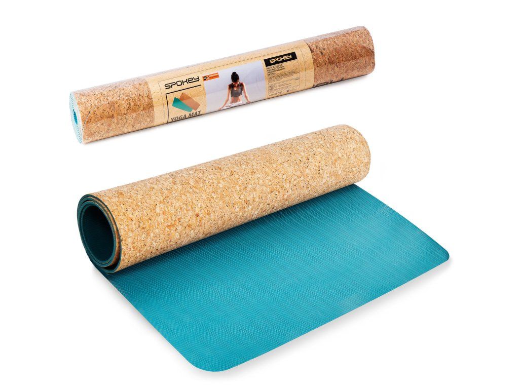 Spokey SAVASANA Korková jóga podložka, 180 x 60 x 0,4 cm, modrá