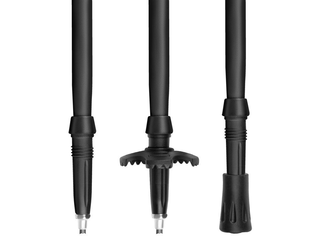 - Snadné nastavení délky: Třídílná konstrukce z lehkého hliníku umožňuje rychlou a přesnou úpravu délky od 105 do 135 cm.