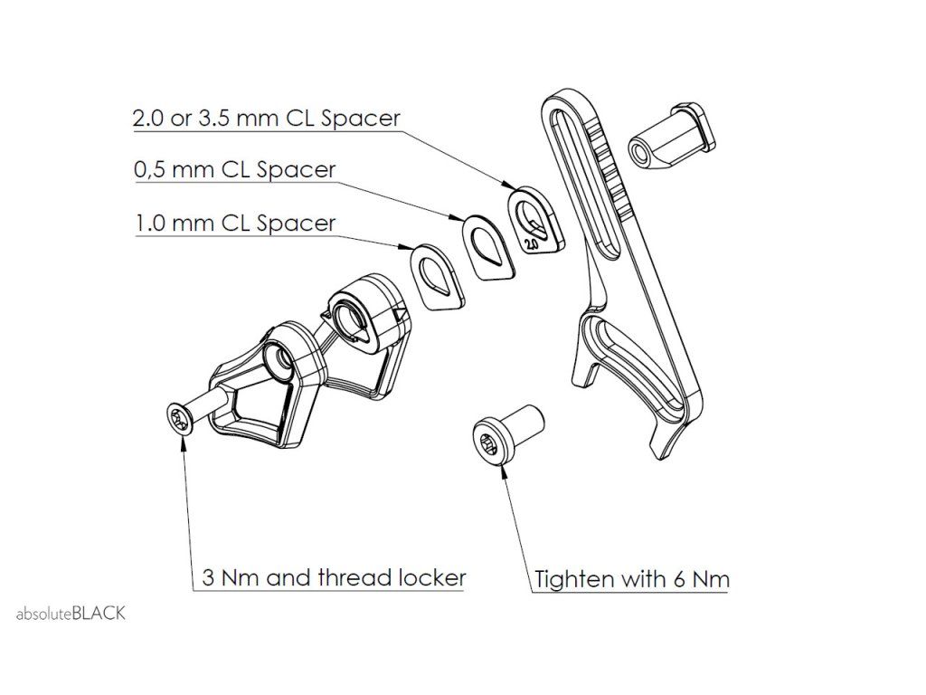 Balení: Kompletní vodítko řetězu; řetězová linka, distanční set (0.5, 1, 2, 3,5mm); 1x titan M6 Torx T25 šrouby