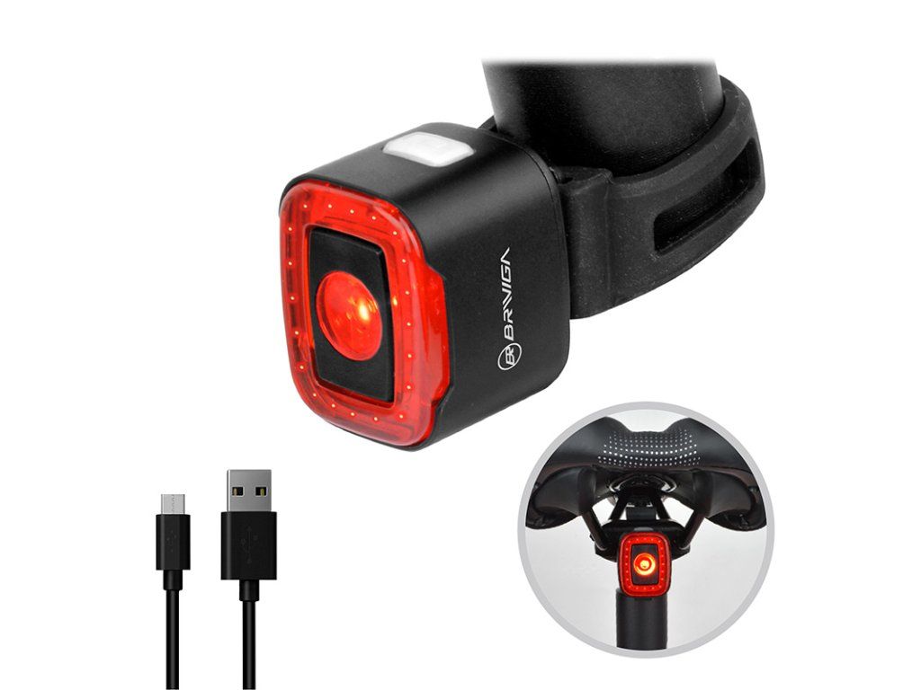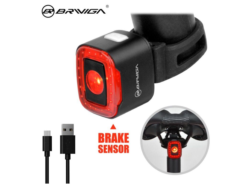 Zadní světlo s brzdovým senzorem. Pokud začnete brzdit, světlo se automaticky rozsvítí na 3s na plný výkon a poté se automaticky vrátí do běžného režimu, který jste nastavili.