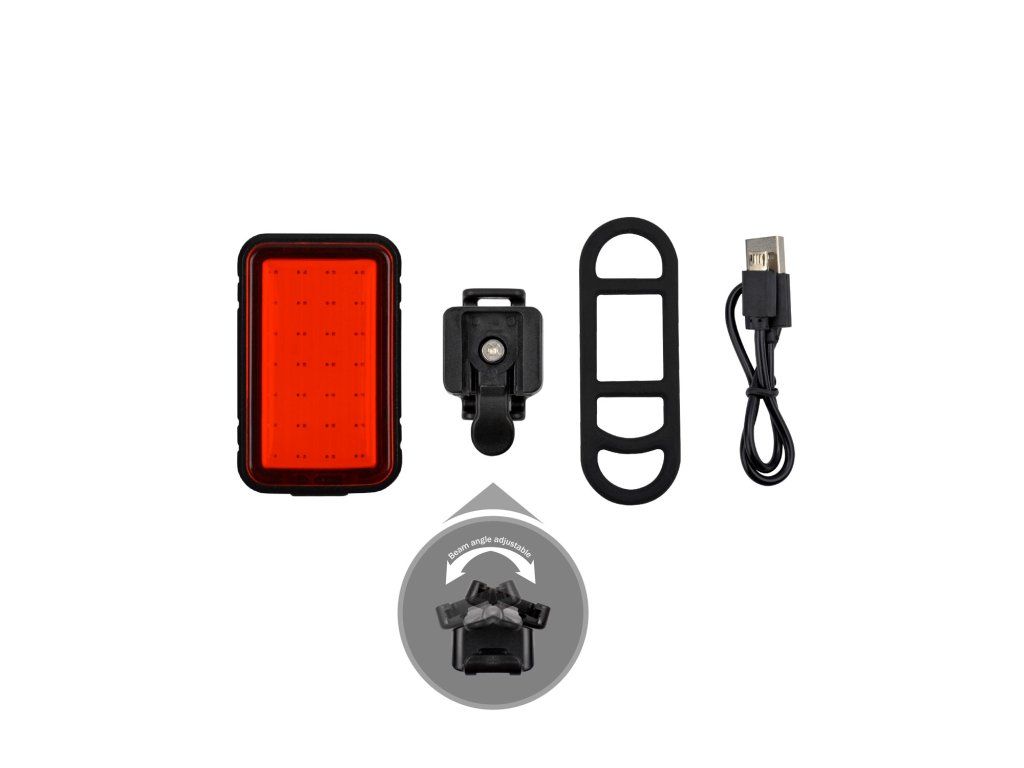Režim a doba provozu: stálé svícení (4h), pomalé blikání(12h), rychlé blikání (8h) + signál automatického brždění. Dlouhé podržení tlačítka - vypnutí světla.