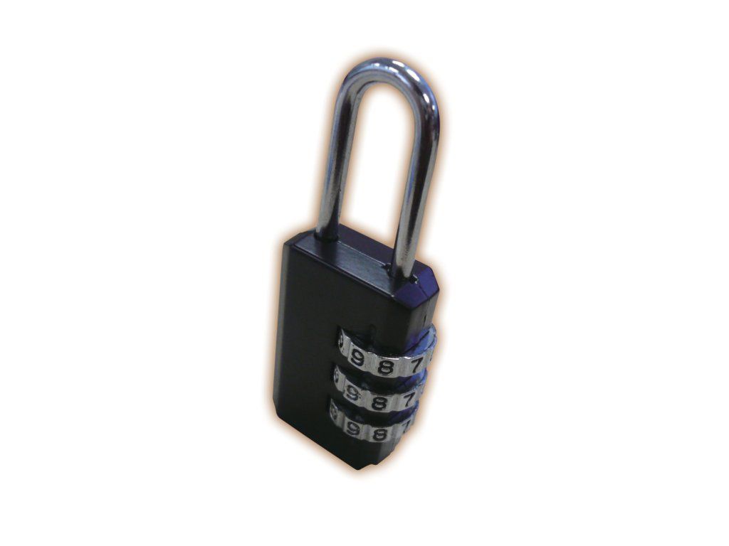 Číselný zámek vhodný pro zabezpečení zavazadel. Trojciferná kombinace dle vlastního výběru. Materiál zinek.Doplňkové parametry