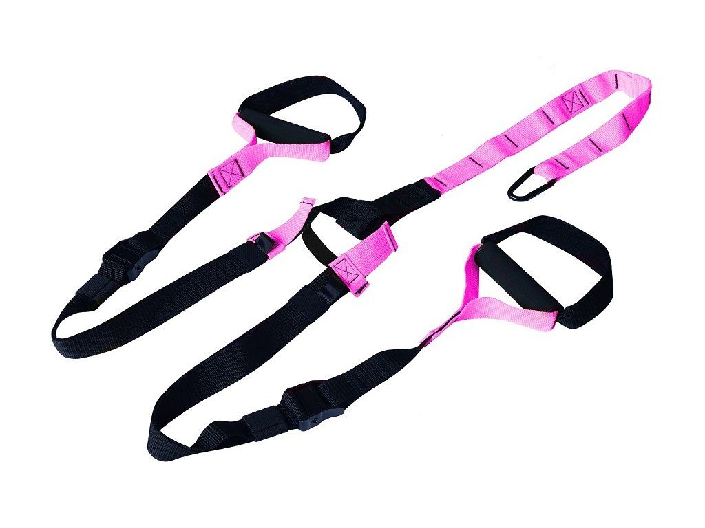 Závěsné posilovací popruhy nastavitelné - jedná se o multifunkční posilovací pomůcku sloužící ke kondičnímu cvičení a intenzivnímu posilování vlastní hmotností a odporem. Systém se skládá z popruhů a přezek, díky kterým jde snadno uchytit na strom či jiný opěrný bod. Závěsné posilovací popruhy slouží k posilování rukou, nohou, břišních a zádových svalů a na protahování celého těla. Jednoduchý, ale velmi efektivní systém posilování proti vlastní hmotnosti se rychle stal velice oblíbeným druhem posilování u všech typů uživatelů, hlavně pro svou vysokou účinnost a nízké pořizovací náklady. Lze také použít s různými balančními pomůckami jako jsou bosu ball, balanční polštářky, podložky atd.. Díky nízké hmotnosti lze snadno přenášet. Jednoduchá instalace a používání dělají z posilovacích popruhů ideální všestranné posilovací zařízení. Závěsné posilovací popruhy nastavitelné umožňují efektivně posilovat svalstvo celého těla doma, v tělocvičně i v přírodě. Kvalitní provedení a jednoduchá montáž zajišťují vysoký stupeň bezpečnosti a pohodlí při cvičení. - jednoduchý posilovací systém - úchopy na ruce jsou opatřeny pěnovými madly - efektivní posilování všech svalových partií - snadná a rychlá instalace - nízká hmotnost, minimální rozměry - nízké pořizovací náklady - univerzální systém uchycení umožnuje využití doma, v posilovně, v přírodě nebo na dovolené - maximální délka 215 cm / minimálně lze zkrátit na 175 cm (délka je uvedena včetně karabiny) - nosnost 150kg - centrální popruh s ukončením úchopů na ruce či nohy - závěs pro ukotvení na strom či jiný pevný bod - provedení černo-růžovéDoplňkové parametry